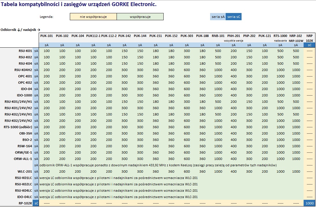 | Maks. zasięg | od 200 m do 1000 m w zależności od zastosowanego nadajnika |