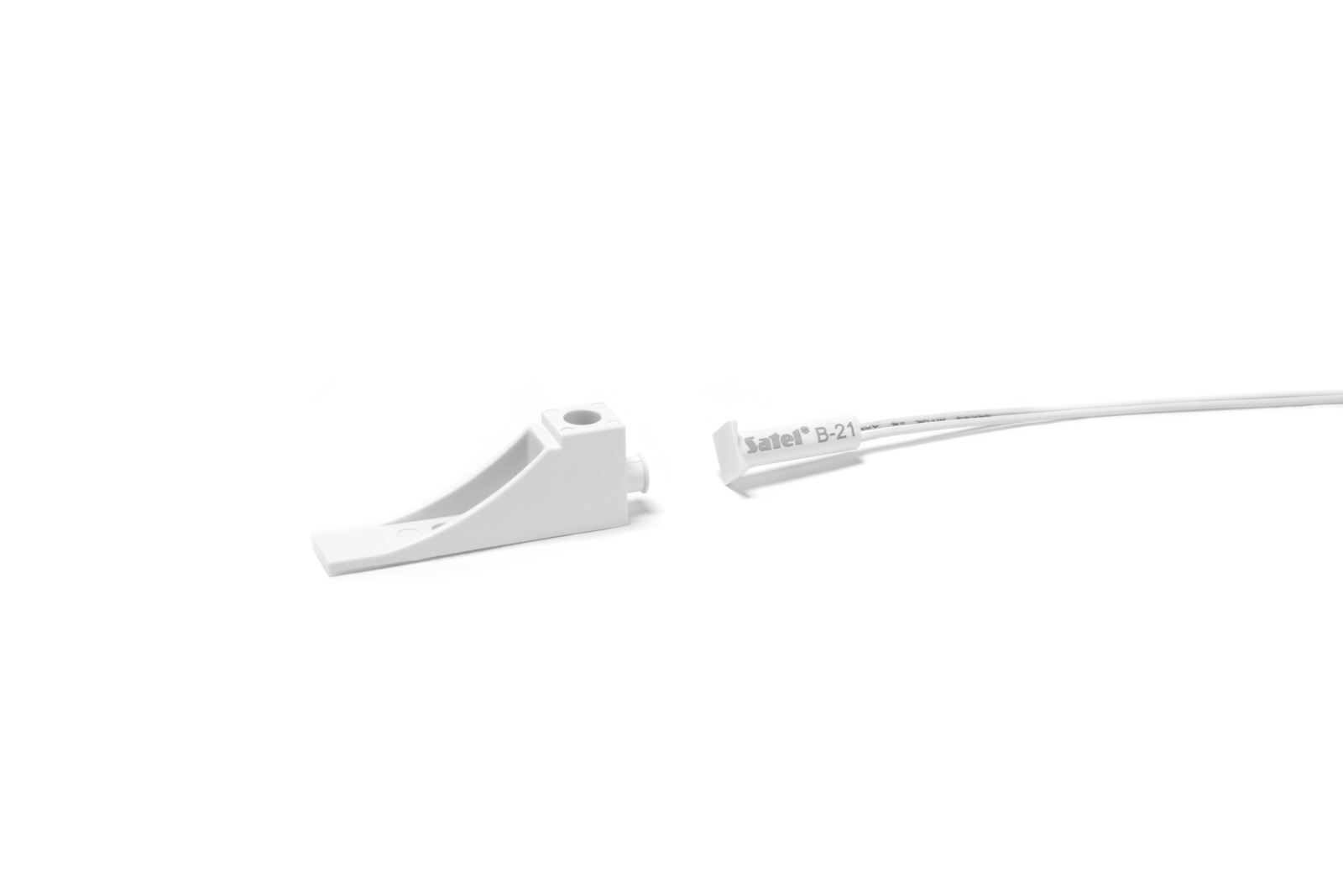 Czujki magnetyczne umożliwiają wykrycie otwarcia drzwi, okien itp. Hermetyczna czujka kontaktronowa B-21 z kołnierzem przeznaczona jest do montażu wpuszczanego. Do czujki dołączono uchwyt magnesu, który umożliwia montaż czujki w trudno dostępnych miejscach.