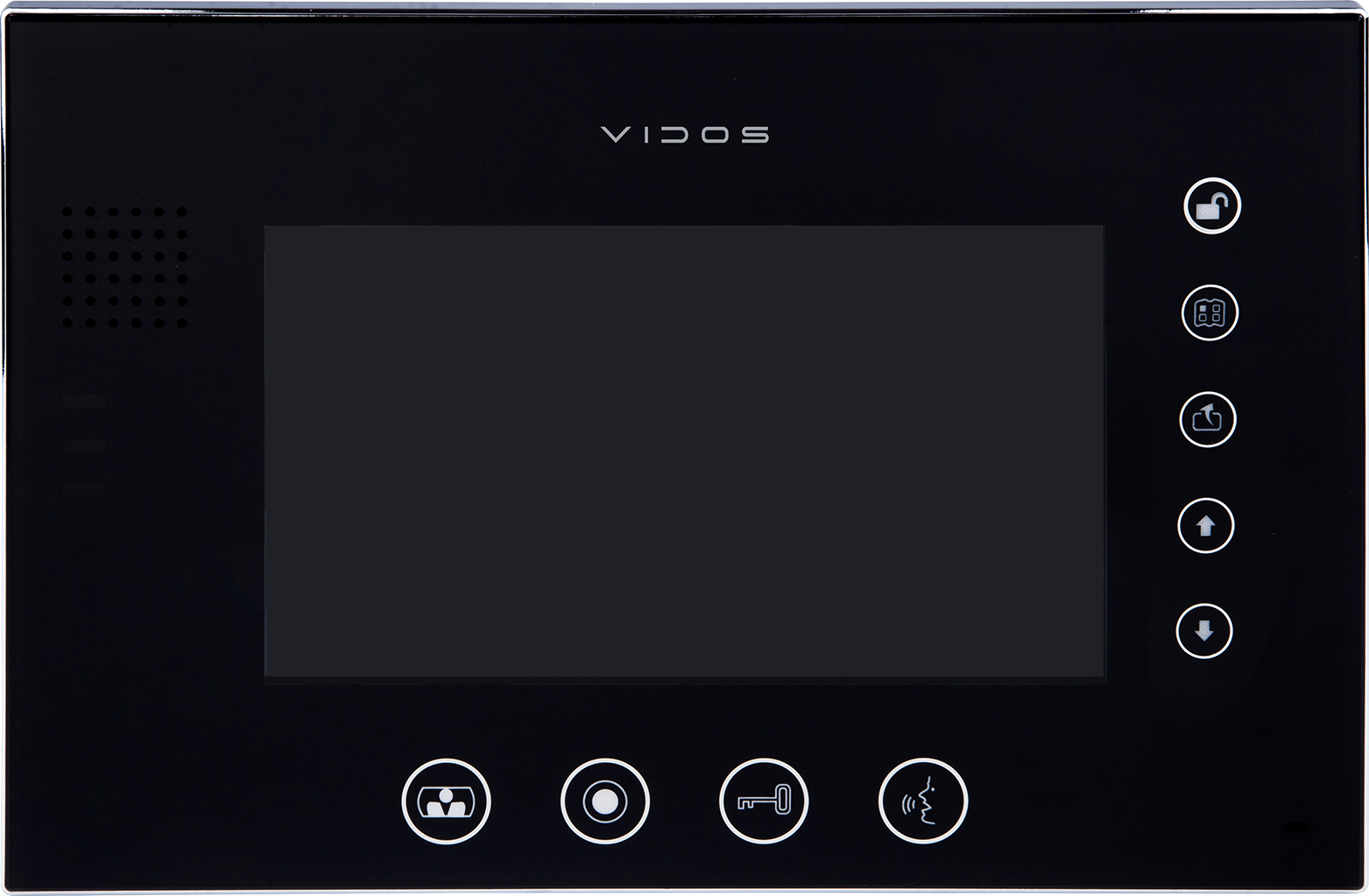 Elegancki monitor Vidos M670 do obsługi wideodomofonu to nowoczesne urządzenie elektroniczne umożliwiające komfortowe sterowanie zewnętrzną stacją bramową realizującą funkcję kontroli dostępu na teren obiektu. Urządzenie wyposażone zostało w ciekłokrystaliczny ekran LCD o przekątnej 7" wyświetlający prezentowane treści w panoramicznych proporcjach obrazu. Zaletą monitora jest możliwość doprowadzenia sygnału wideo z dwóch źródeł, w tym z analogowych kamer CCTV.