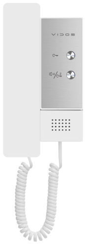 U1010-2 to nowoczesny unifon słuchawkowy do systemów wideodomofonowych z rodziny Vidos DUO. Urządzenie operuje na bazie fizycznego panelu przycisków funkcyjnych, przewodowej słuchawki rozmównej oraz wbudowanego głośnika. Unifon umożliwia sterowanie maksymalnie dwoma przekaźnikami, zapewnia wsparcie do czterech stacji bramowych i pozwala na skuteczną pracę zarówno w systemach jedno i wieloabonentowych. Urządzenie wyposażono w praktyczne przyciski funkcyjne odpowiedzialne za sterowanie stanem otwarcia furtek i bram wejściowych oraz panel przełączników ustawień pozwalający m.in. na swobodną regulację poziomu głośności dzwonka.
