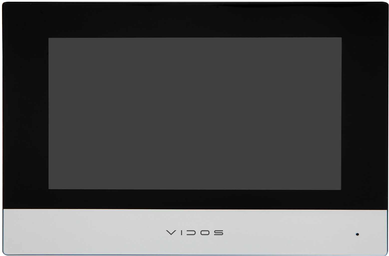 Wewnętrzna jednostka systemu wideodomofonowego VIDOS ONE M2010. Monitor umożliwia komunikację ze stacją bramową, podgląd obrazu ze wszystkich kamer IP w systemie oraz zarządzanie czujnikami alarmowymi zintegrowanymi z wideodomofonem. Monitor M2010 wyposażony został w dotykowy ekran pojemnościowy o przekątnej 7", który dzięki wysokiej rozdzielczości 1024x600 pikseli wyświetla przejrzysty i szczegółowy obraz. Urządzenie wyposażono w wysokiej jakości system dwukierunkowego audio. Producent zadbał o użytkownika zapewniając mu do obsługi monitora intuicyjne menu, sterowane bezpośrednio z ekranu dotykowego.