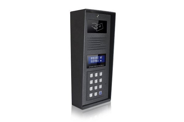 Cyfrowy panel domofonowy MASTER OP-MA765R G firmy Elfon w wandaloodpornej obudowie w kolorze grafitowym z czytnikiem RFID. Obudowa wykonana jest ze stopu cynku i aluminium. Panel umożliwia stworzenie skomplikowanego systemu z czterema wejściami głównymi (nadrzędnymi) i wejściami podrzędnymi z maksymalnie 4 wejściami głównych do maksymalnie 15 stref (lokalnych linii unifonów lub linii wideo).