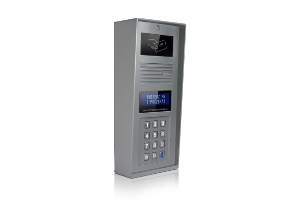 - Dodatkowe informacje: czytnik zbliżeniowy kart / kluczy RFID, panel SLAVE, podgrzewany graficzny wyświetlacz LCD, wizytówka adresowa