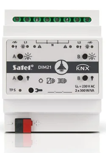 Moduł KNX-DIM21 jest uniwersalnym dwukanałowym aktorem ściemniającym KNX, który umożliwia płynne sterowanie źródłami światła o mocy do 300 W na jeden kanał. Światło może zostać włączone / wyłączone, ściemnione / rozjaśnione, ustawione poprzez zdefiniowaną wcześniej scenę lub inną funkcję za pośrednictwem magistrali KNX. Aktor może współpracować z obciążeniem rezystancyjnym, indukcyjnym i pojemnościowym (R, L, C).
