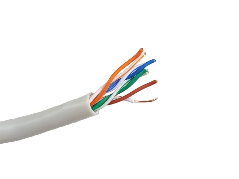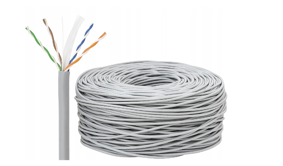 Skrętka telekomunikacyjna marki Satec 8-żyłowa U/UTP (nieekranowana), kategorii 5e, z przewodnikiem miedzianym typu drut 0,5mm. Kabel składa się z 4 par (8 żył) skręconych ze sobą w celu zmniejszenia wpływu zakłóceń. Do transmisji danych wykorzystywane jest pasmo 350MHz.