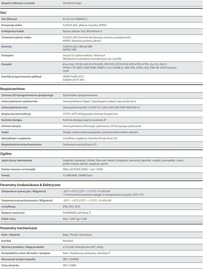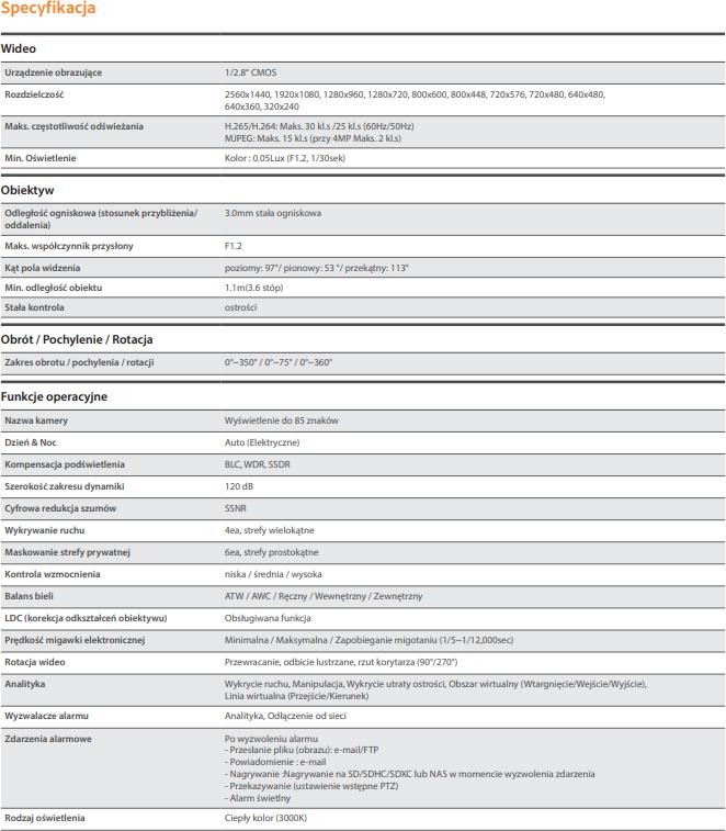 | Typ kamery | Zewnętrzna/wewnętrzna |