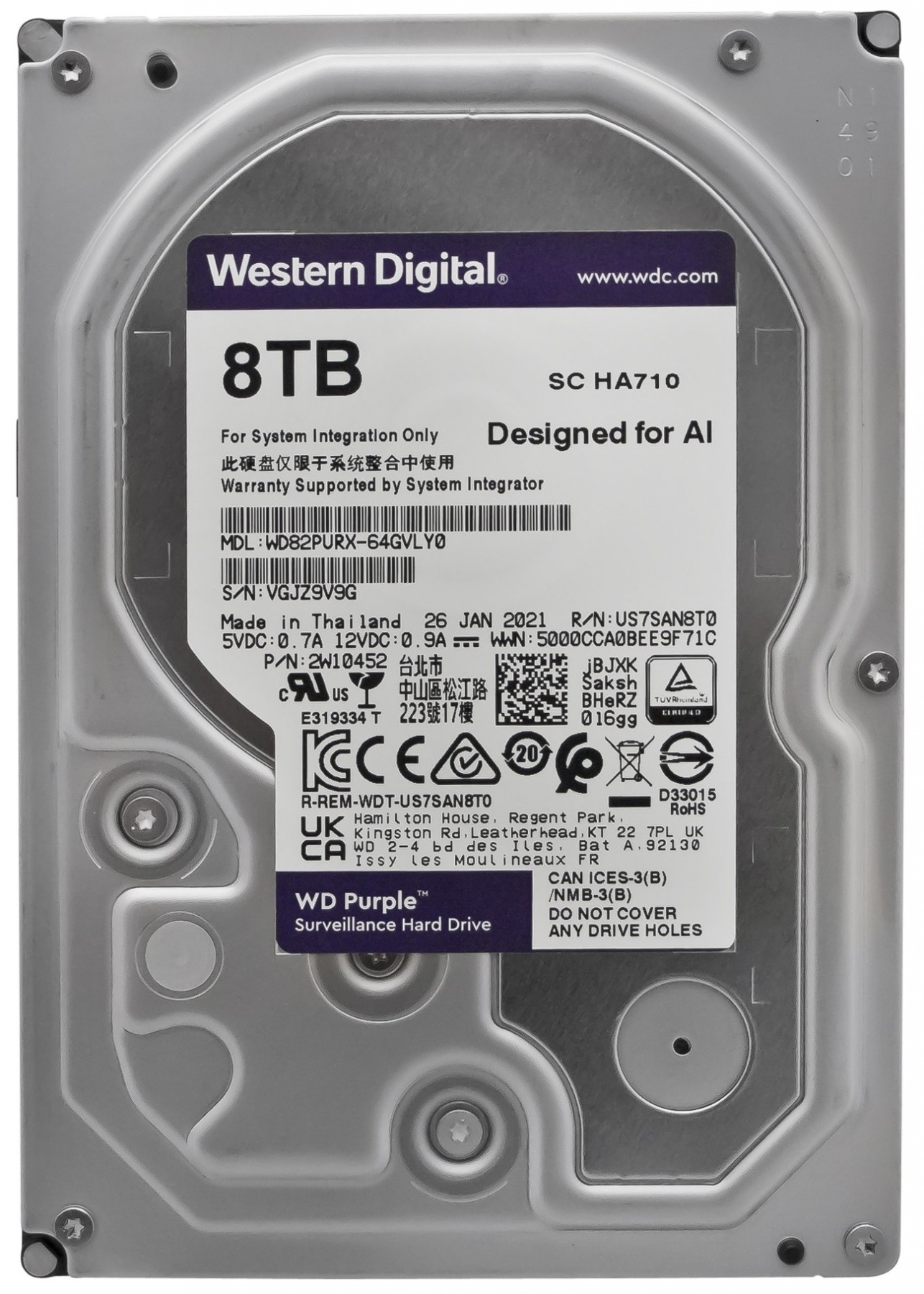 Dysk Western Digital serii Purple z interfejsem SATA przeznaczony do pracy ciągłej w systemach CCTV