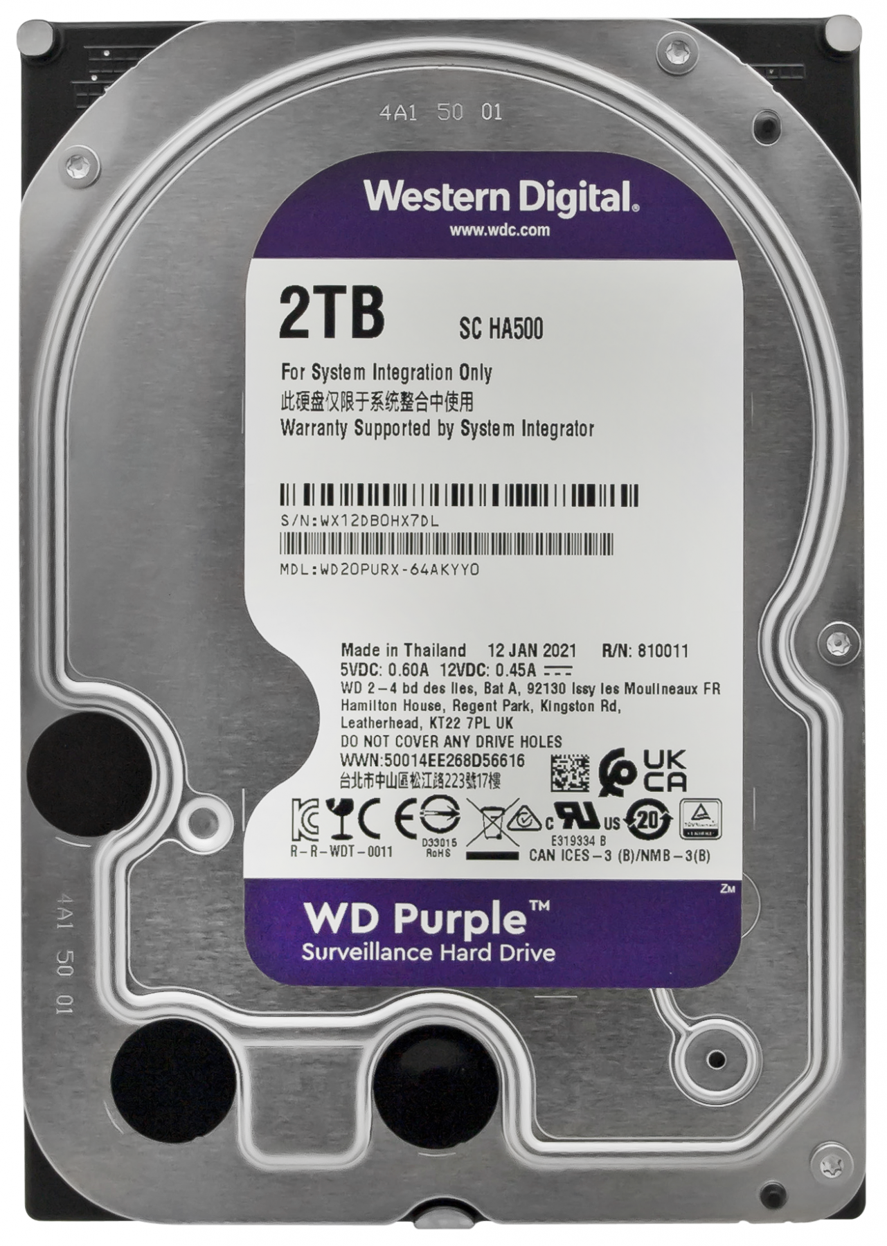 Dysk Western Digital serii Purple z interfejsem SATA przeznaczony do pracy ciągłej w systemach CCTV