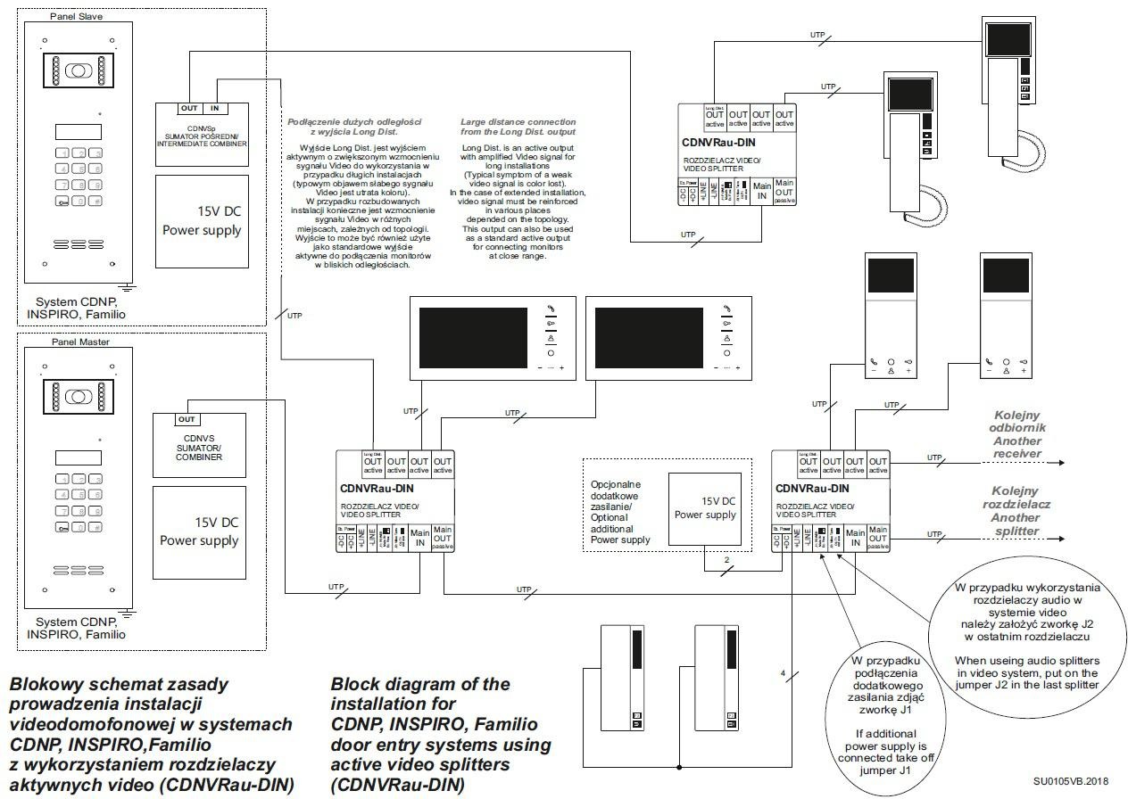 - jedno wyjście aktywne z dodatkowym wzmocnieniem sygnału wideo (przy długich magistralach niweluje straty sygnału video)