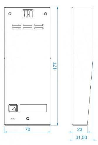 Domofon wyposażony jest w czytnik breloków zbliżeniowych oraz podświetlane przyciski i pola opisowe.
