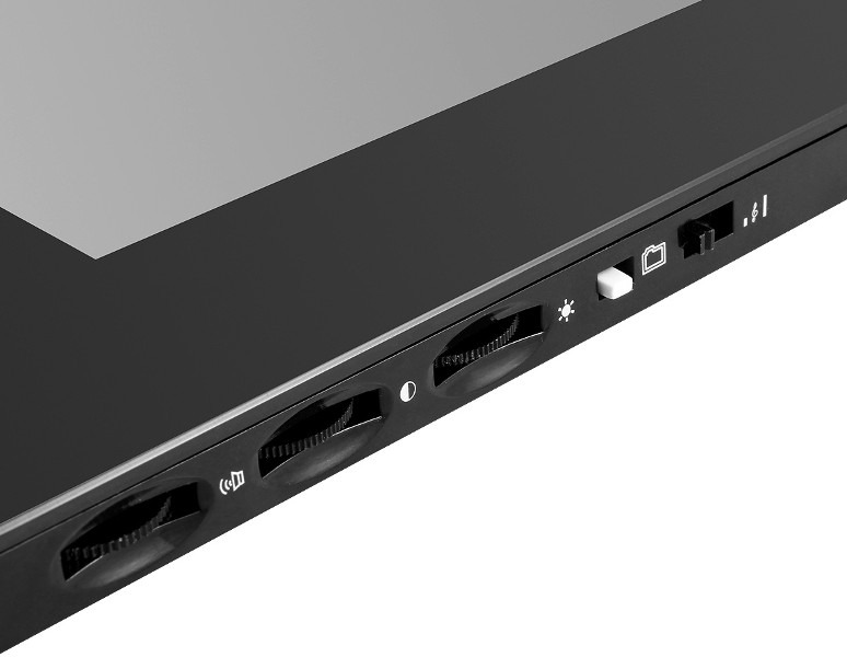 Monitor wyposażony jest w pokrętła regulacyjne umożliwiające dostosowanie głośności rozmowy, jasności oraz nasycenia 7'' wyświetlacza. Używając przycisku znajdującego się nad nimi użytkownik może wybrać jedną z 16 dostępnych melodii gongu, a przesuwając przełącznik - zmienić jej głośność.