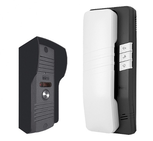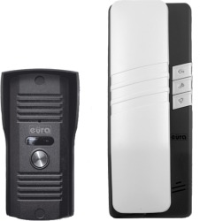 Domofon jednorodzinny - Eura ADP-20A3, wyposażony jest w grafitowo-srebrny unifon , małogabarytową kasetę zewnętrzną oraz zasilacz 12 V DC.
