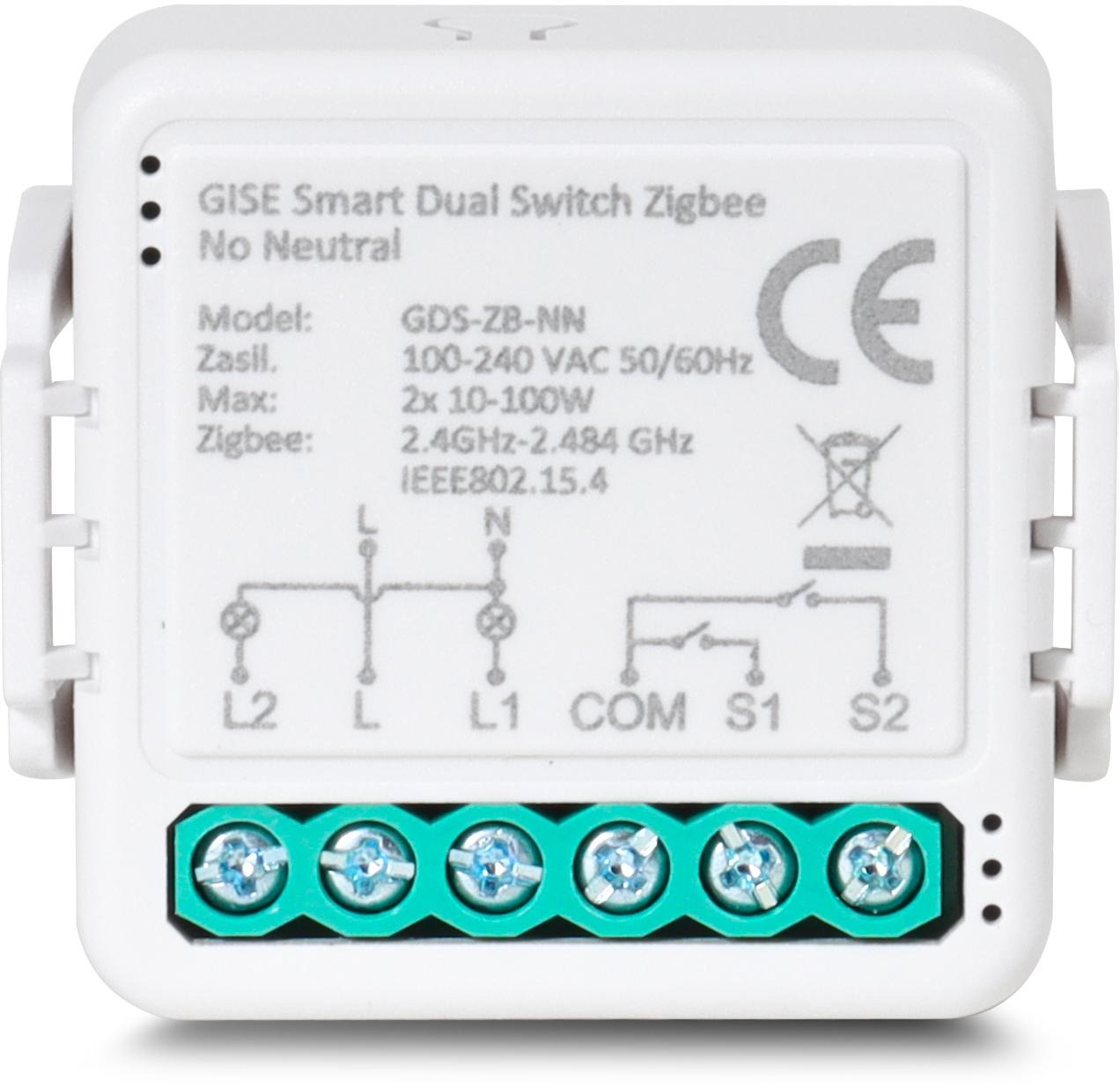 Gise SMART Dual Switch No Neutral - podwójny przekaźnik oświetleniowy Zigbee kompatybilny z aplikacją TUYA