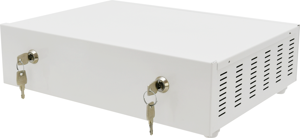 Konstrukcja obudowy dostosowana do wymagań z zakresu ochrony danych osobowych (RODO), które muszą być chronione i bezpiecznie przechowywane. Obudowa służy do zabezpieczenia rejestratora przed niepowołanym dostępem lub kradzieżą. Wykonana jest z blachy o grubości 1mm. Na wyposażeniu dwa zamki (różny kod), do każdego zamka dwa klucze w zestawie oraz tamper otwarcia obudowy i oderwania od ściany.