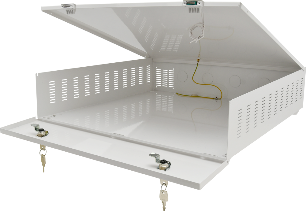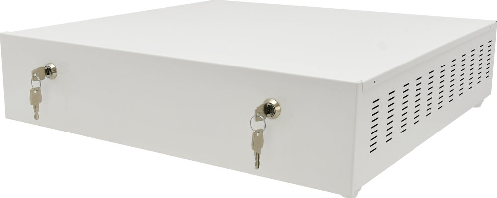 Konstrukcja obudowy dostosowana do wymagań z zakresu ochrony danych osobowych (RODO), które muszą być chronione i bezpiecznie przechowywane. Obudowa służy do zabezpieczenia rejestratora przed niepowołanym dostępem lub kradzieżą. Wykonana jest z blachy o grubości 1mm. Na wyposażeniu dwa zamki (różny kod), do każdego zamka dwa klucze w zestawie oraz tamper otwarcia obudowy i oderwania od ściany.