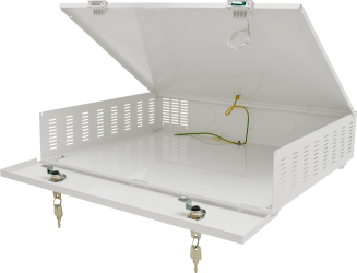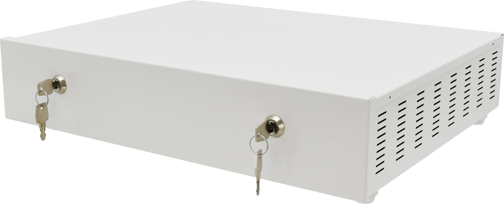 Konstrukcja obudowy dostosowana do wymagań z zakresu ochrony danych osobowych (RODO), które muszą być chronione i bezpiecznie przechowywane. Obudowa służy do zabezpieczenia rejestratora przed niepowołanym dostępem lub kradzieżą. Wykonana jest z blachy o grubości 1mm. Na wyposażeniu dwa zamki (różny kod), do każdego zamka dwa klucze w zestawie oraz tamper otwarcia obudowy i oderwania od ściany.