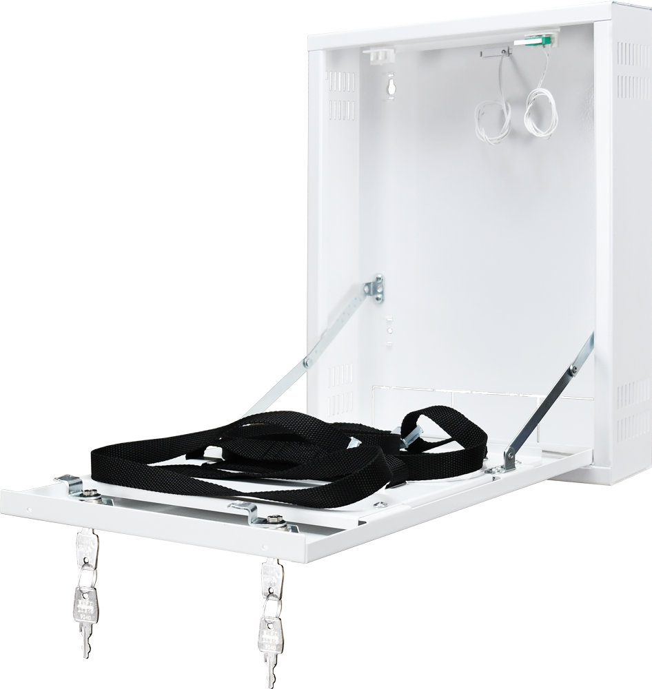 Ze względu na pionowy montaż obudowy i niewielką głębokość jest idealnym rozwiązaniem wszędzie tam gdzie nie można zainstalować obudów o dużej głębokości lub szaf typu RACK 19”. Po otwarciu obudowy czołówka przytrzymywana jest w pozycji poziomej, dzięki czemu uzyskujemy łatwy dostęp do przycisków umieszczonych na panelu przednim rejestratora. W obudowie zastosowano specjalny uchwyt z pasami trzymającymi, pozwalający na montaż rejestratorów o wymiarach: szerokości do 260 mm, wysokości do 55 mm, głębokości 250 mm.