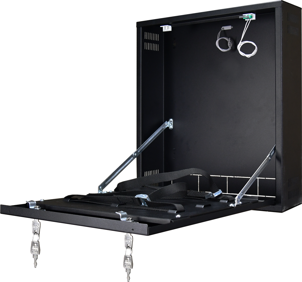 Ze względu na pionowy montaż obudowy i niewielką głębokość jest idealnym rozwiązaniem wszędzie tam gdzie nie można zainstalować obudów o dużej głębokości lub szaf typu RACK 19”. Po otwarciu obudowy czołówka przytrzymywana jest w pozycji poziomej, dzięki czemu uzyskujemy łatwy dostęp do przycisków umieszczonych na panelu przednim rejestratora. W obudowie zastosowano specjalny uchwyt z pasami trzymającymi, pozwalający na montaż rejestratorów o wymiarach: szerokości do 375 mm, wysokości: do 95 mm, głębokości 335 mm.