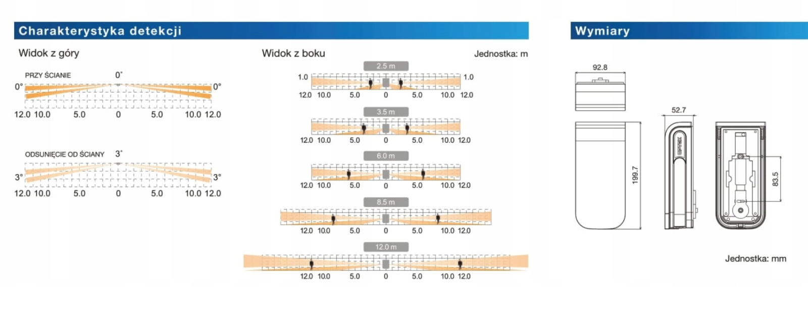 | Zalecana wysokość montażu | 0.8 - 1.2m |
