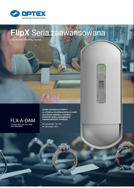 Przeznaczone do zastosowań wymagających wysokiego poziomu zabezpieczeń modele FlipX Advanced są wyposażone w funkcję antymaskingu podczerwieni i mikrofali generującą sygnał usterki w przypadku próby zakrycia czujki. Produkt wykrywa próby przesłonięcia zarówno powierzchni soczewki, jak i przedniej pokrywy, umożliwiając ich wykrycie oraz wywołanie alarmu niezależnie od miejsca przesłonięcia.