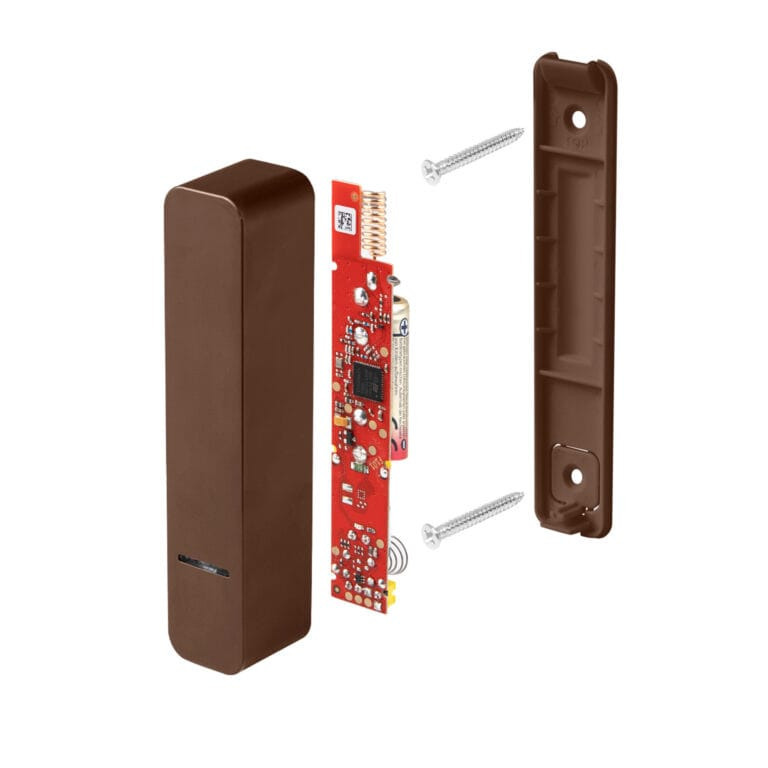 Bezprzewodowa czujka kontaktronowa i wstrząsowa EvoDOOR NX SHOX działająca w systemie EvoLiNK – kolor Brąz.