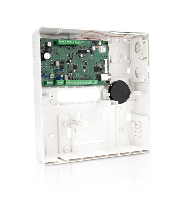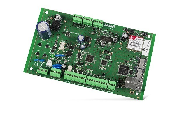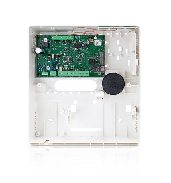 - wbudowane moduły: ethernetowy, komórkowy GSM/GPRS, dialer PSTN, głosowy, akustycznej weryfikacji alarmu i komunikator telefoniczny z funkcją monitoringu, powiadamiania głosowego i zdalnego sterowania