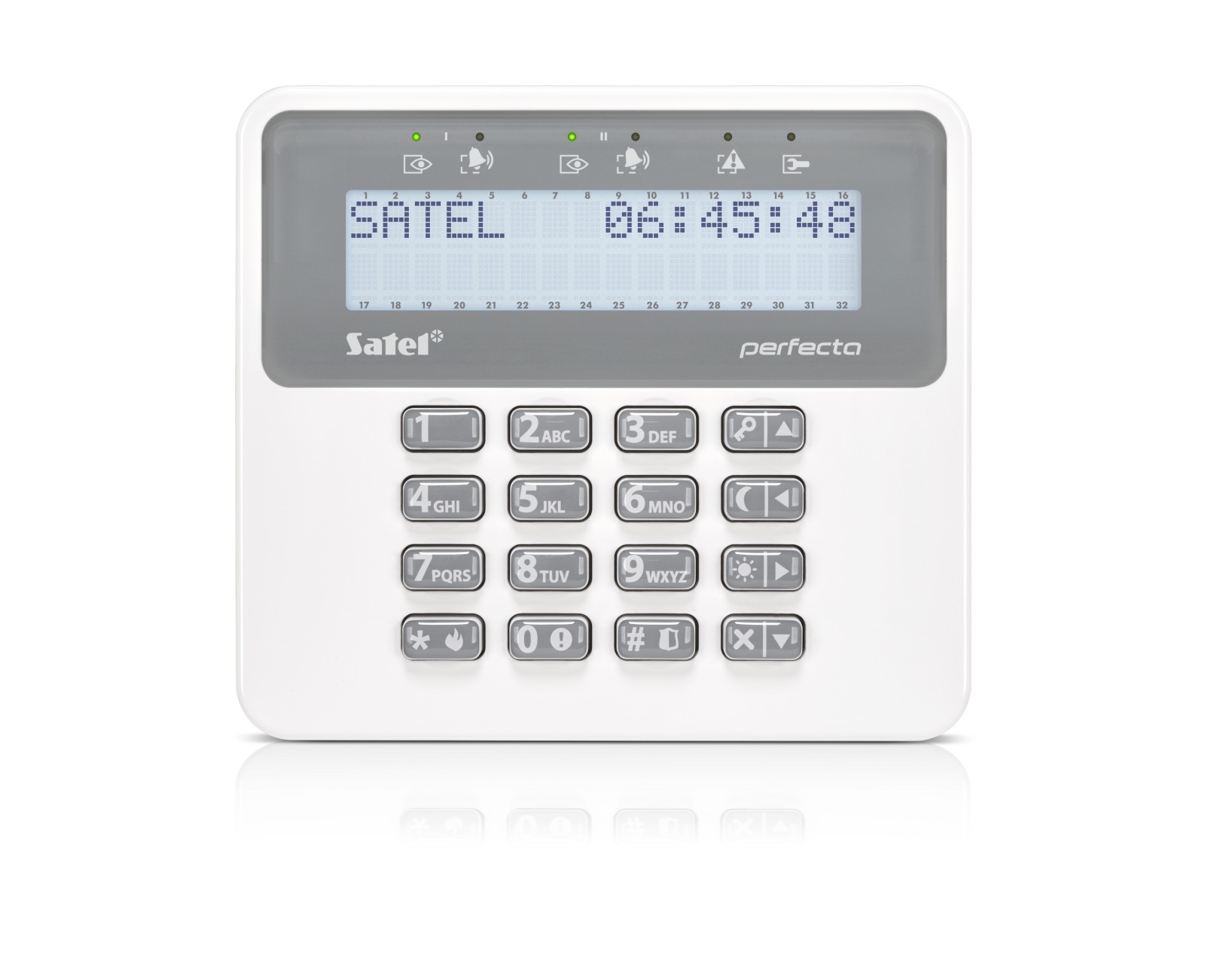 PRF-LCD-WRL to bezprzewodowy manipulator służący do codziennej obsługi central PERFECTA 16-WRL, PERFECTA 32-WRL, PERFECTA-T 32-WRL i PERFECTA-IP 32-WRL. Szyfrowana komunikacja z centralą odbywa się dwukierunkowo, w paśmie 433 MHz. Klawiatura, oprócz klawiszy numerycznych, posiada także przyciski umożliwiające szybkie włączanie wybranego trybu dozoru (dziennego, nocnego, pełnego) i wywoływanie trzech alarmów: napad, pożar, pomoc.