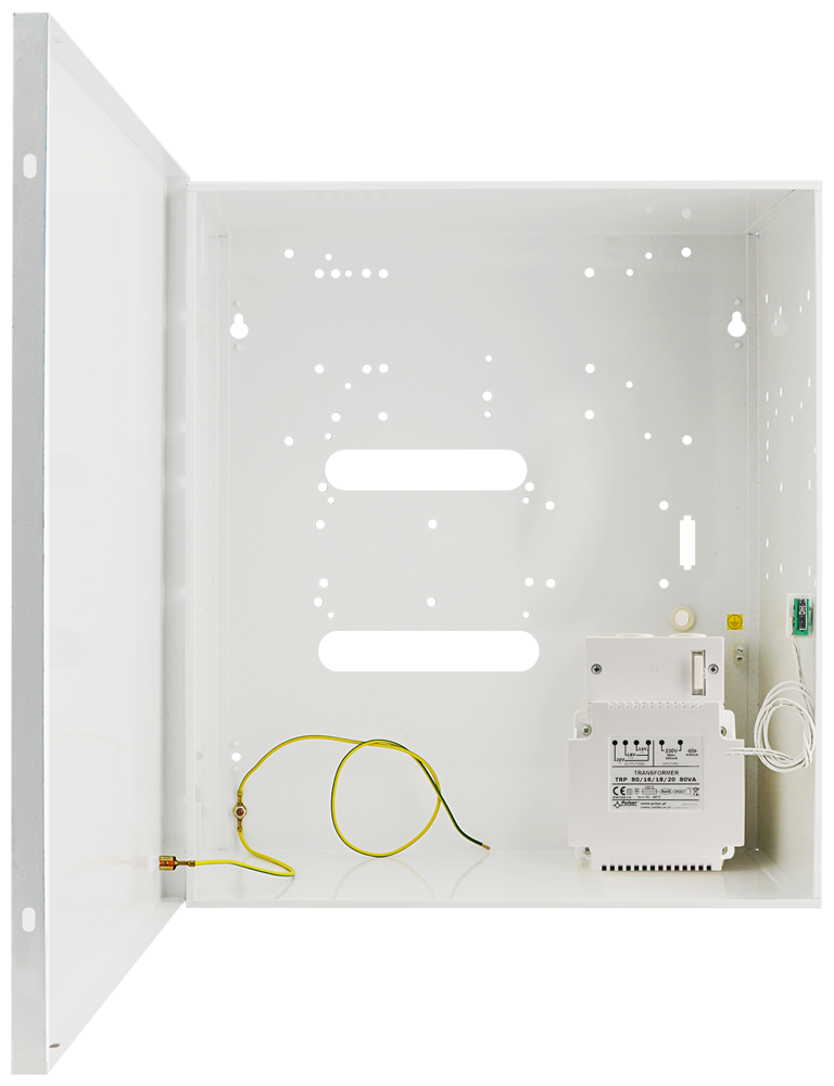 AWO301 to metalowa obudowa natynkowa, która została zaprojektowana z myślą o montażu central i modułów Satel, DSC wewnątrz pomieszczeń. Obudowa posiada miejsce na akumulator o maksymalnej pojemności 24Ah/12V, zamontowany transformator TRP 80VA/16V/18V/20V oraz zabezpieczenie antysabotażowe, chroniące przed nieautoryzowanym otwarciem obudowy.