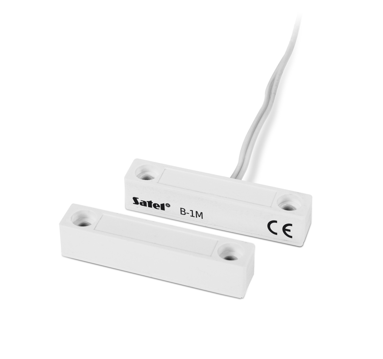 Czujki magnetyczne są podstawowym elementem ochrony obwodowej, ich standardowym zadaniem jest wykrywanie otwarcia drzwi i okien. Średniej wielkości, hermetyczna czujka kontaktronowa B-1M przeznaczona jest do montażu powierzchniowego. Może być przyklejana lub przykręcana do podłoża. Długość przewodu : 45cm.