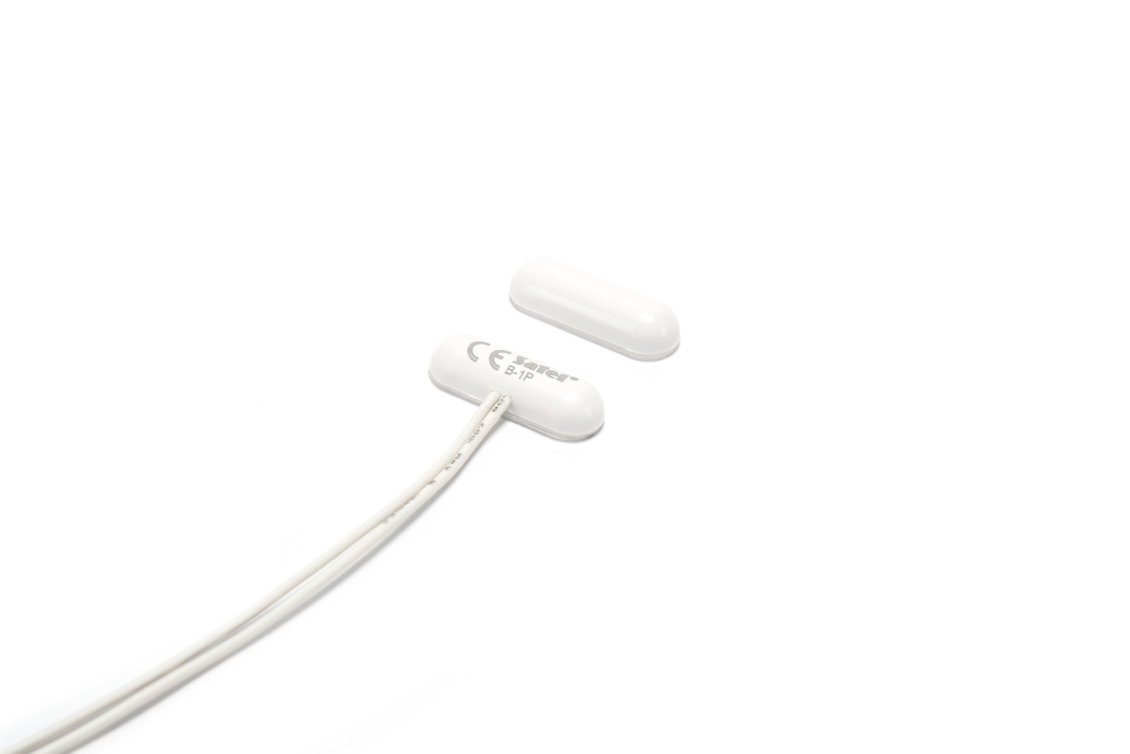 Czujki magnetyczne umożliwiają wykrycie otwarcia drzwi, okien itp. Hermetyczna czujka kontaktronowa B-1P ma postać niewielkiej podłużnej pastylki i przeznaczona jest do montażu powierzchniowego (przyklejana do podłoża). Długość przewodu : 40cm.
