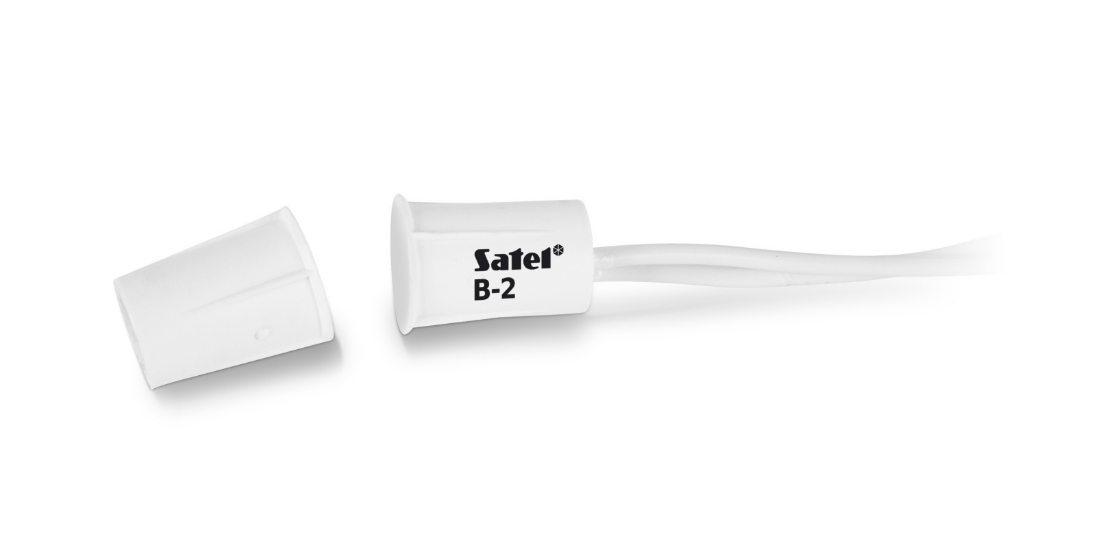 Czujki magnetyczne są podstawowym elementem ochrony obwodowej, ich standardowym zadaniem jest wykrywanie otwarcia drzwi i okien. Mała, hermetyczna czujka kontaktronowa czołowa B-2 przeznaczona jest do montażu wpuszczanego w skrzydło i ramę drzwi lub okien. Długość przewodu: 45cm.