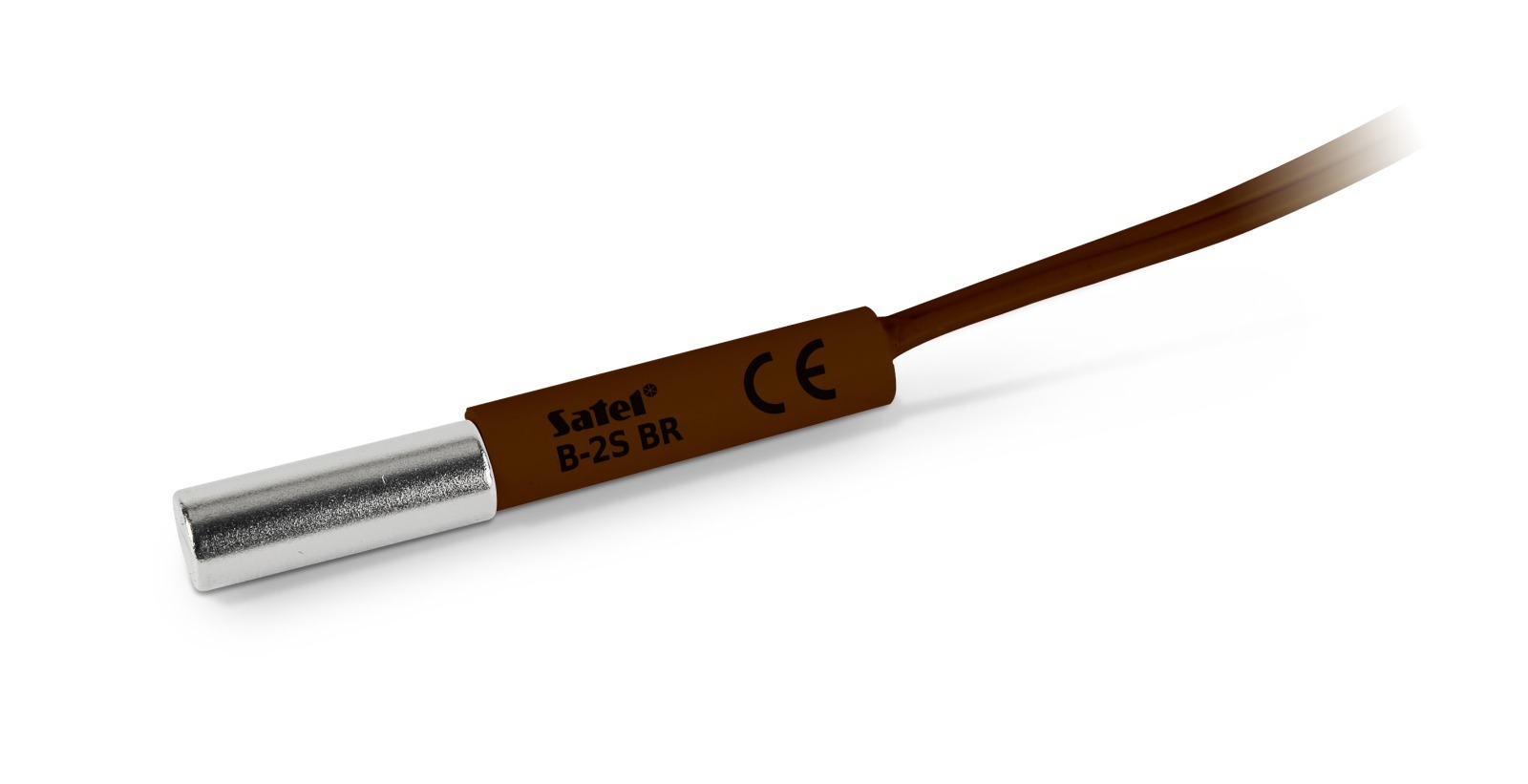 Czujki magnetyczne są podstawowym elementem ochrony obwodowej, ich standardowym zadaniem jest wykrywanie otwarcia drzwi i okien. Miniaturowa, hermetyczna czujka kontaktronowa czołowa B-2S BR przeznaczona jest do montażu wpuszczanego w skrzydło i ramę drzwi lub okien. Długość przewodu: 45cm.