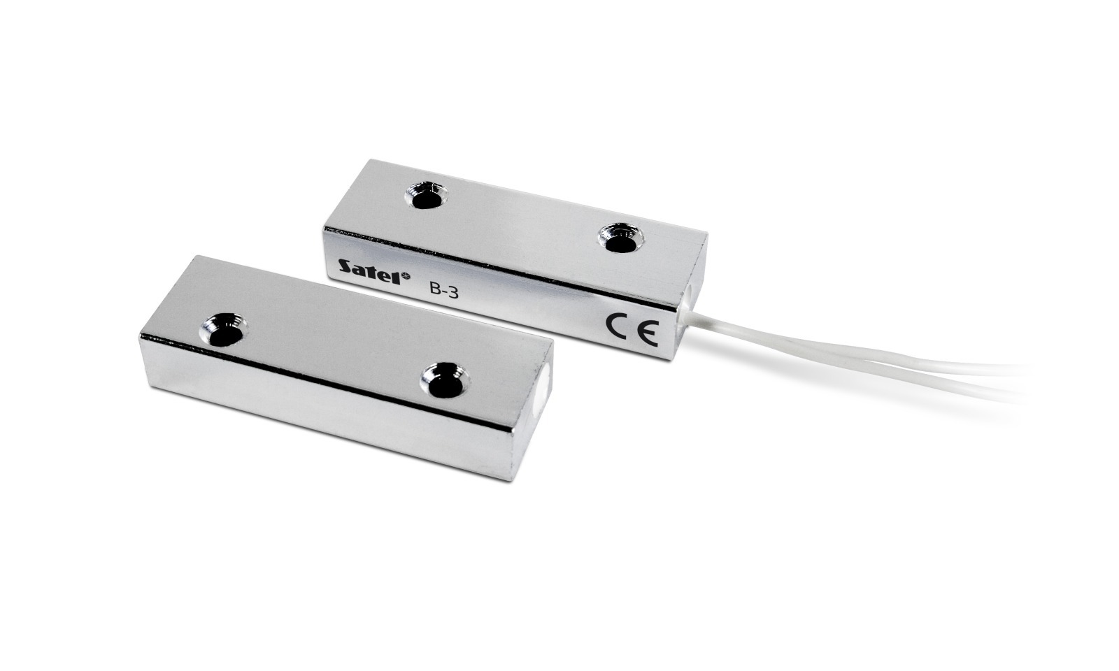 Czujki magnetyczne są podstawowym elementem ochrony obwodowej. Średniej wielkości, hermetyczna czujka kontaktronowa B-3 w metalowej obudowie, przeznaczona jest do montażu powierzchniowego. Przeznaczona jest tylko do przykręcania do podłoża. Długość przewodu: 65cm.