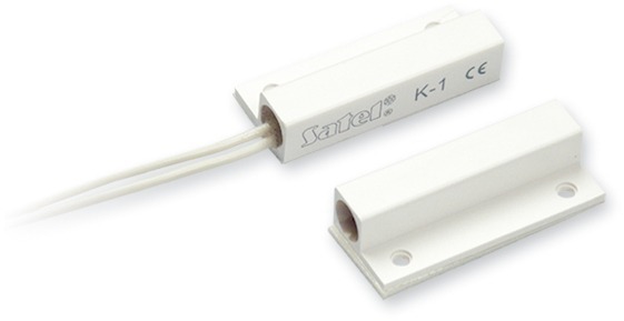 Czujki magnetyczne są jednymi z podstawowych urządzeń ochrony obwodowej. Służą do zabezpieczania drzwi, okien itp., reagując na ich otwarcie. Czujka K-1 przeznaczona jest do montażu powierzchniowego. Długość przewodu: 35cm.