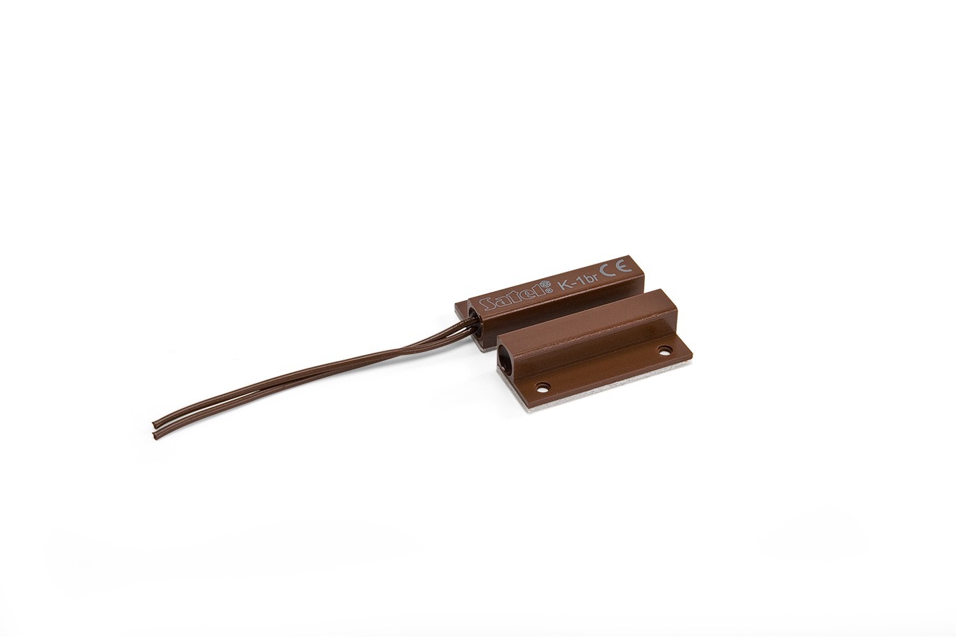 Czujki magnetyczne są jednymi z podstawowych urządzeń ochrony obwodowej. Służą do zabezpieczania drzwi, okien itp., reagując na ich otwarcie. Czujka K-1 BR przeznaczona jest do montażu powierzchniowego. Długość przewodu: 35cm.
