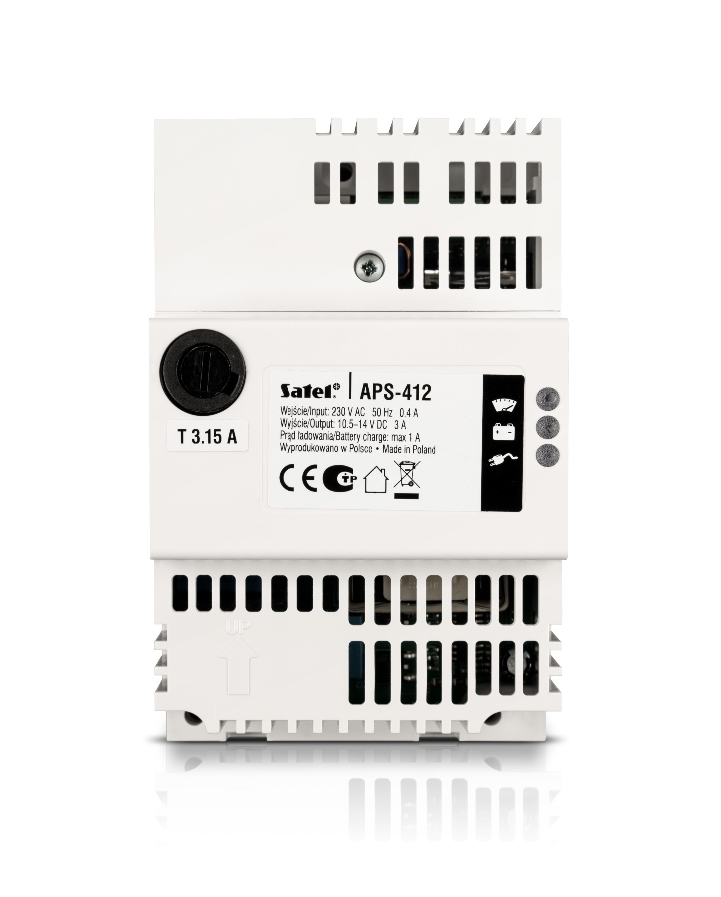 APS-412 to zaawansowany zasilacz buforowy spełniający wysokie wymagania bezpieczeństwa Grade 2 określone normą EN 50131-3. Jego wydajność prądowa wynosi 4 A: 3 A do zasilania urządzeń + 1 A dla ładowania akumulatora. Przeznaczony jest do zasilania odbiorników pracujących na napięciu 12 V DC.